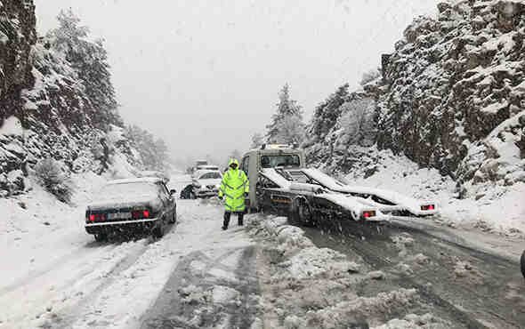 Antalya Emniyet Müdürlüğü Bölge Trafik ekipleri, Akseki üzerinden Konya istikametine gidecek olan TIR ve benzeri uzun araçları dinlenme tesislerine yönlendirirken zinciri ve kar lastiği bulunmayan araçların geçişine izin vermedi.